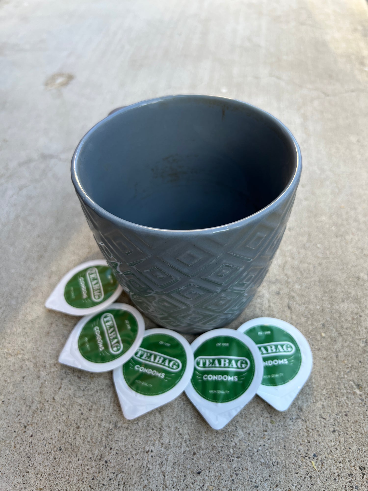 TeaBag Condoms is a new fun way to say you're having fun while having protected sex. It all started when I was at the mall with my wife and kids. I was fumbling in my pocket for a receipt or something and then a bunch of teabags fell out. So my wife goes "YOUR CONDOMS FELL OUT!" loud in public hahaha. Then a lightbulb went off in my head... "Teabagging, Teabags, Condoms...Perfect!". Instantly I thought of the teabag Keurig I had at home as a cool design. SLEEK, DISCREET and perfect for the SHEETS. Nobody has ever really ventured into this niche, so i decided to do it but in a fun, humorous way, while providing people a safe way to have sex. As i like to say: